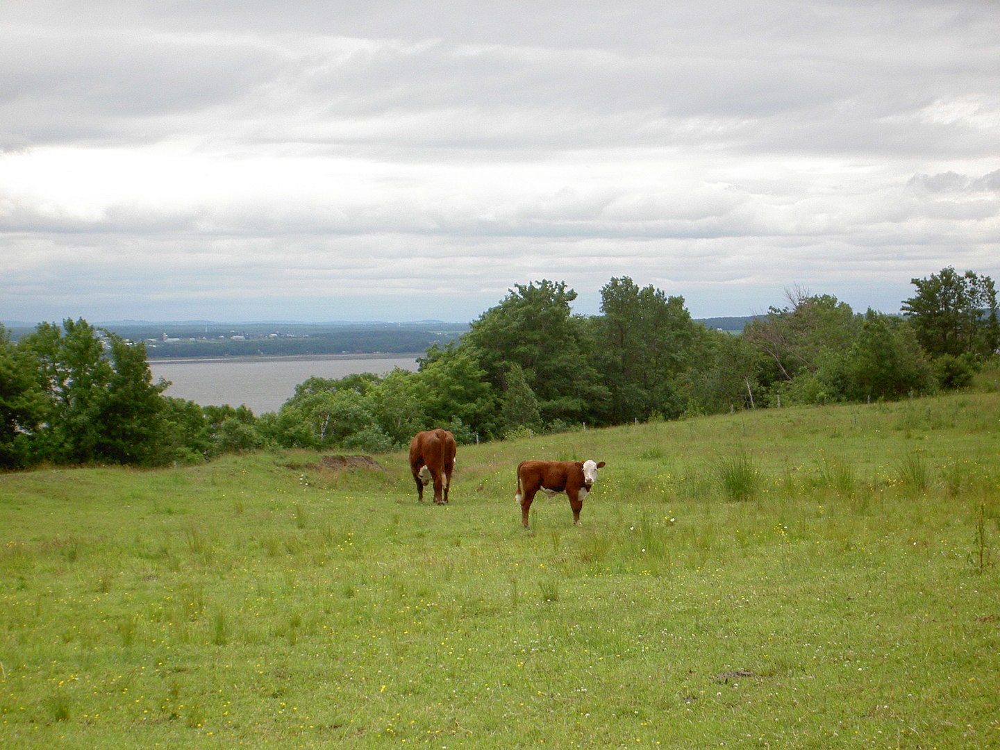 Vincent et Anne Boissonneau ont été les premiers habitants et défricheurs de cette terre sur l'ile. C’est le terrain sur cette photo, sans les vaches, évidemment. Une autre photo du terrain, vu d'un autre angle.